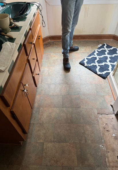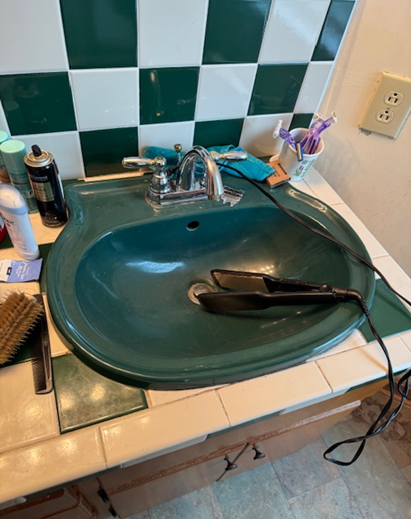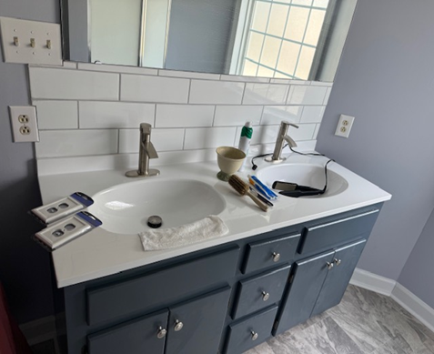 The Robeson County Essential Home Before and After Photos featured here highlight a recent renovation completed through the ROAR program. In the before image, the bathroom sink and surrounding fixtures showed signs of age and wear. After renovations, the space was completely transformed with a modern vanity, updated sink fixtures, new cabinetry, and refreshed tile work, creating a cleaner and more functional space.